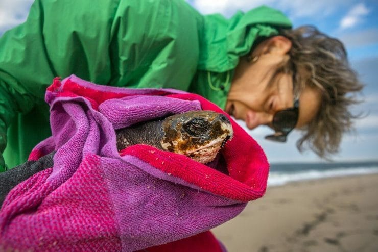 The other likely factor contributing to turtle strandings is the warming of the Gulf of Maine. Climate change has caused the water here to warm earlier each year and to stay warm for longer, keeping young Kemp’s ridleys in the fertile shallows of Cape Cod Bay later each fall.