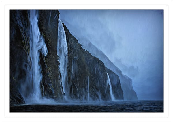 Then the mystery and true wonder of Piopiotahi shows itself. Waterfalls appear from nowhere and cascade like tears down the black sides of the cliffs. The wind whips the fjord's waters into a raging foam and makes the spewing waterfalls turn and blow uphill.