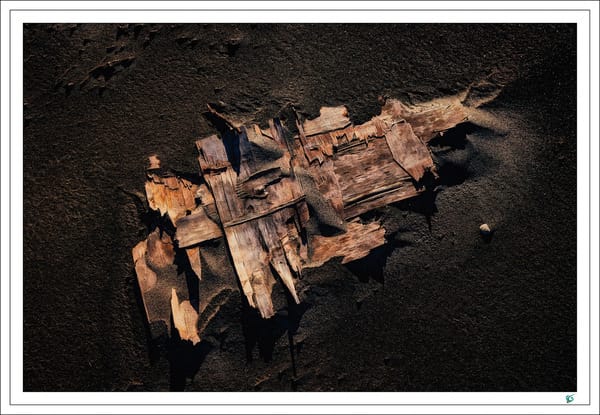 As I wandered up the beach, I saw a piece of driftwood, perhaps 30 cm long, half-buried in the black sand. I stopped and pondered it, and since it was telling me something, I photographed it. After that, I never really thought much more about its significance.