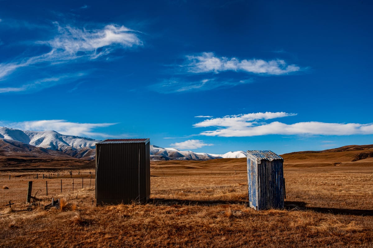 Outhouses, Falls Dam, Manuherakia, Central Otago | Canon 1Ds Mk II, EF 24-70/2.8