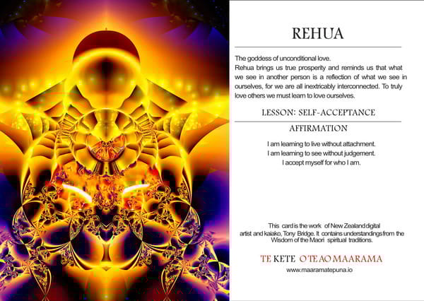 Each card in the deck has its own ahua (face) on one side and, on the back, an explanation, life lesson and affirmation.