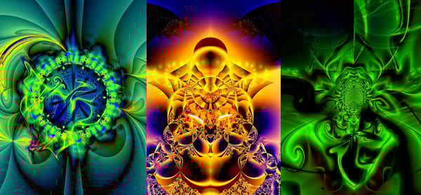 For those of you dear readers wondering how I do it, I use fractal generation software with a final polish in PhotoShop. As a result, each image can have up to 15 layers before it finally resolves itself. It is really intense work, requiring focus and concentration as I feel/intuit my way with them.